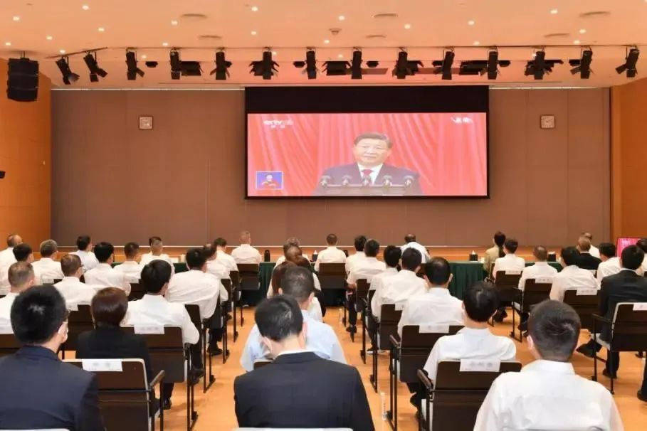 ▲2022年10月16日上午,中國廣核集團有限公司黨委組織干部員工收聽收看黨的二十大開幕直播